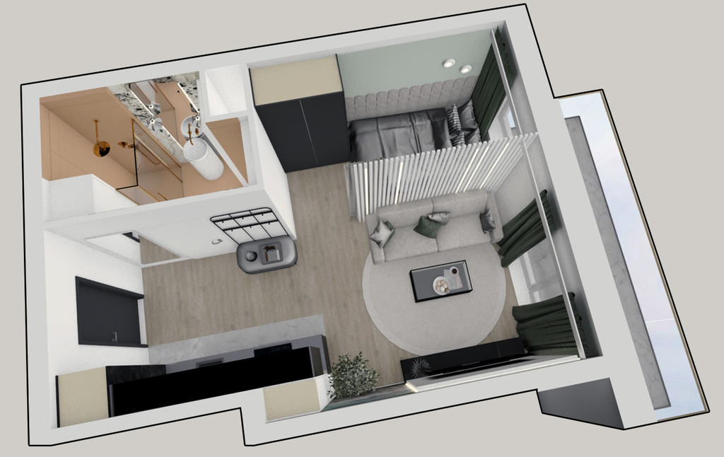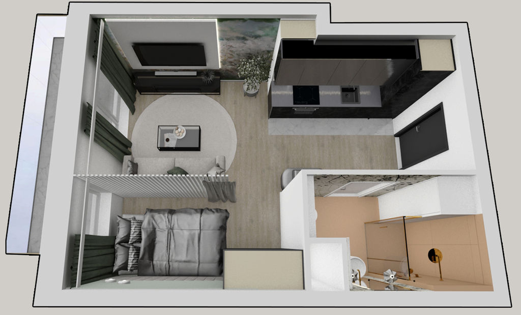 Przedstawione wizualizacje i grafiki mają charakter wyłącznie poglądowy i stanowią wyłącznie materiał pomocniczy, ułatwiający zorientowanie się w ogólnym wyglądzie oferowanej nieruchomości.