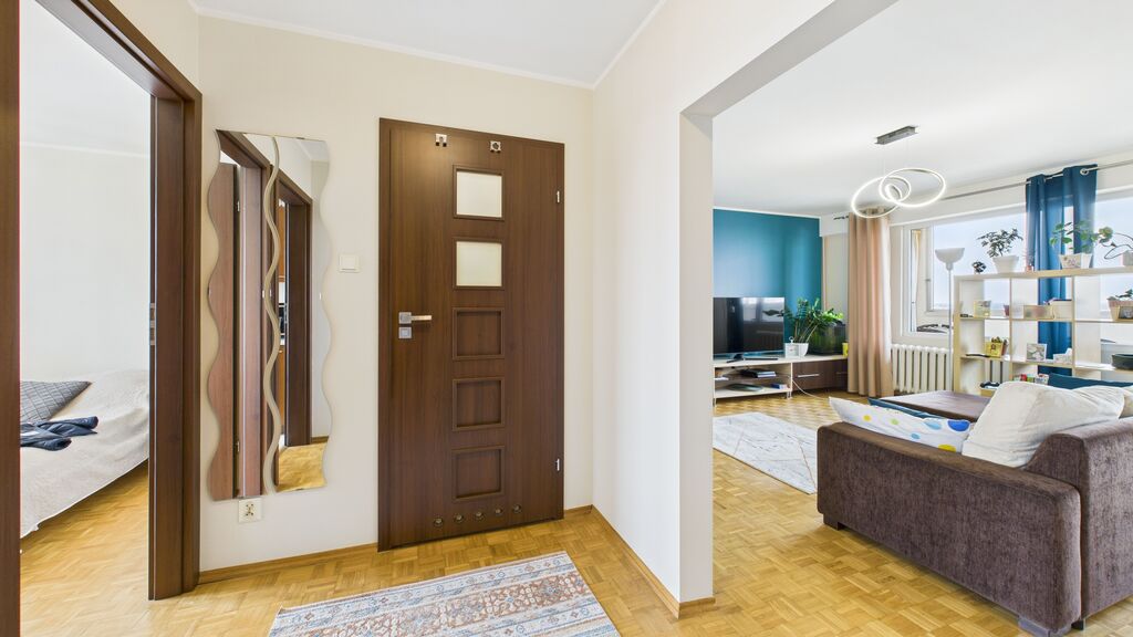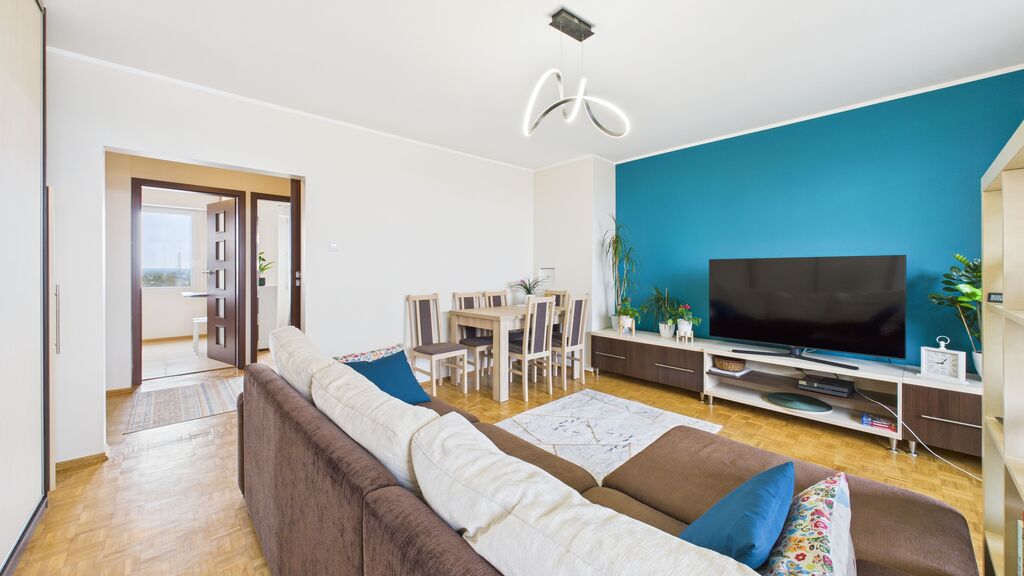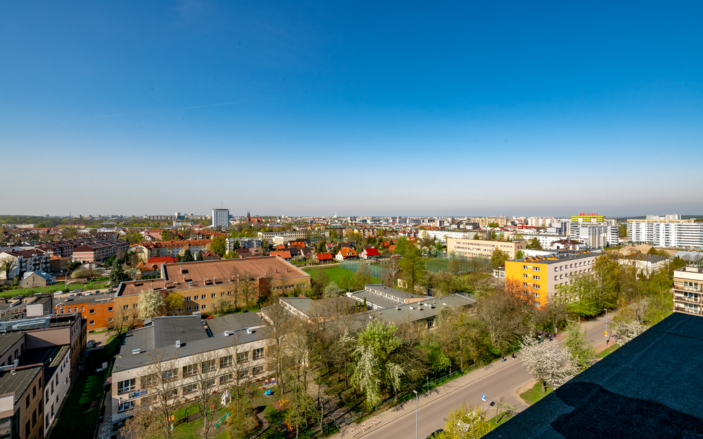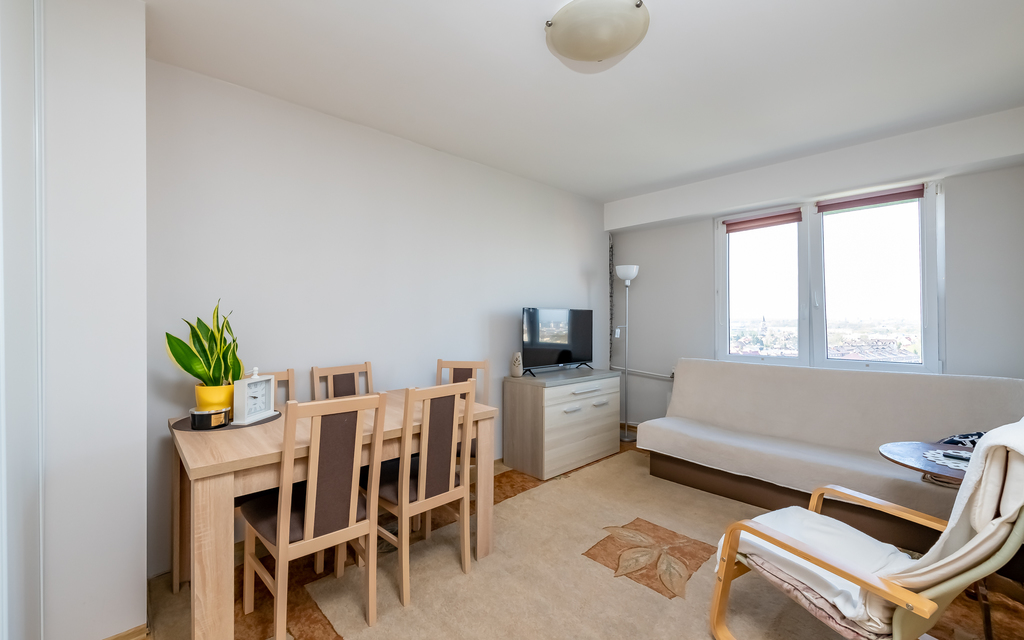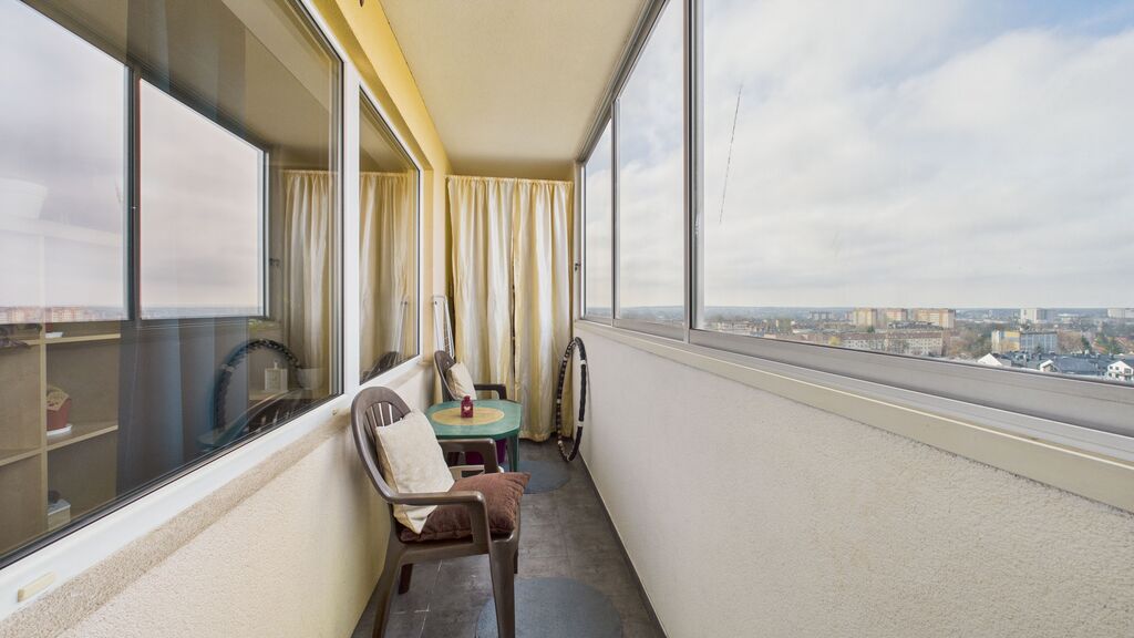 Mieszkanie dobrze doświetlone, widok na panoramę miasta, pod blokiem dużo miejsc parkingowych.