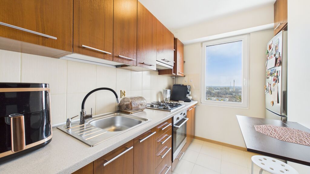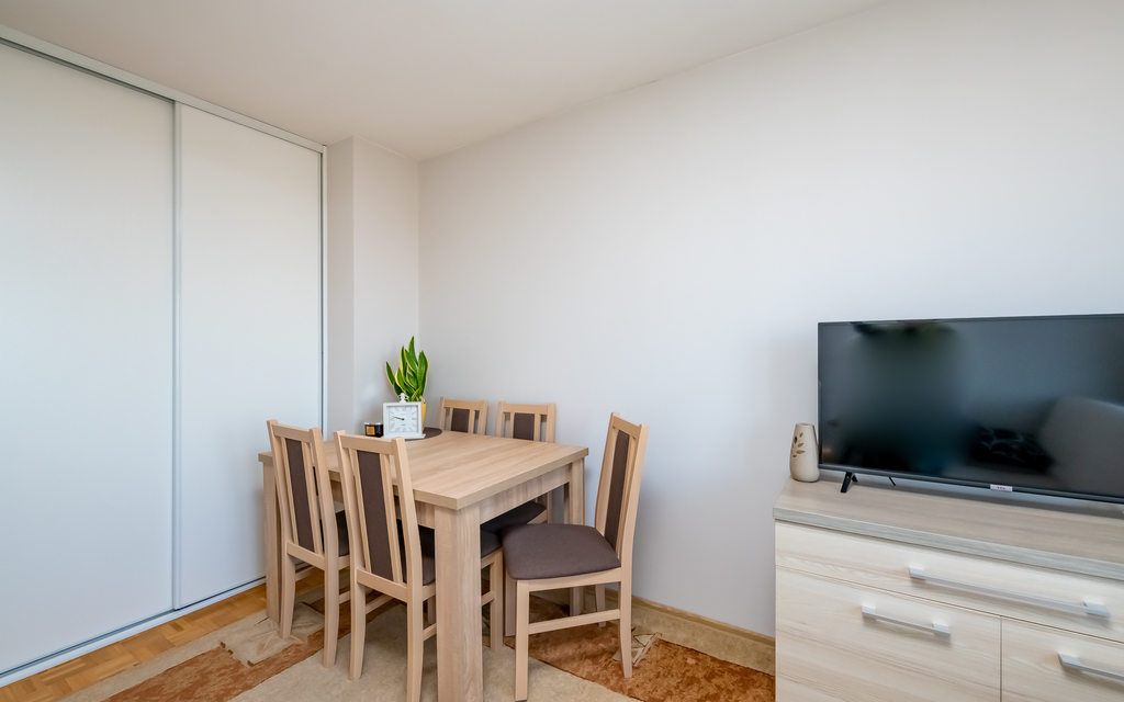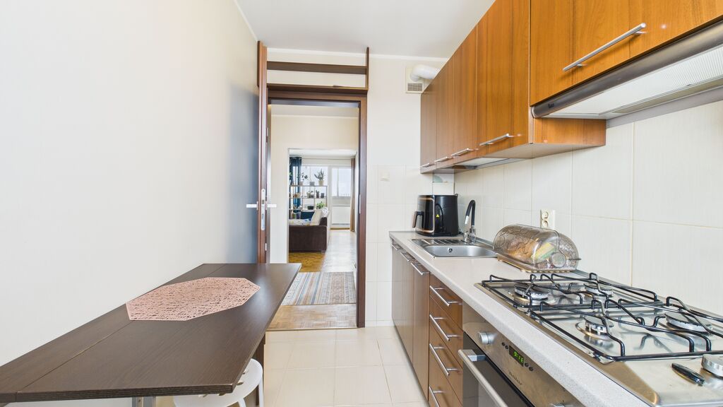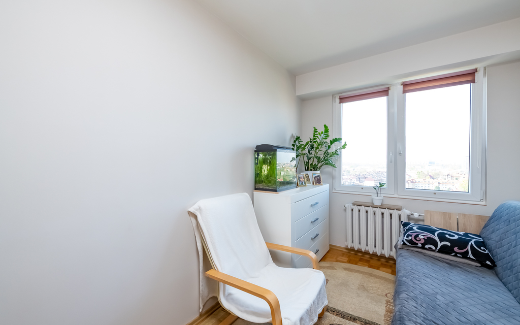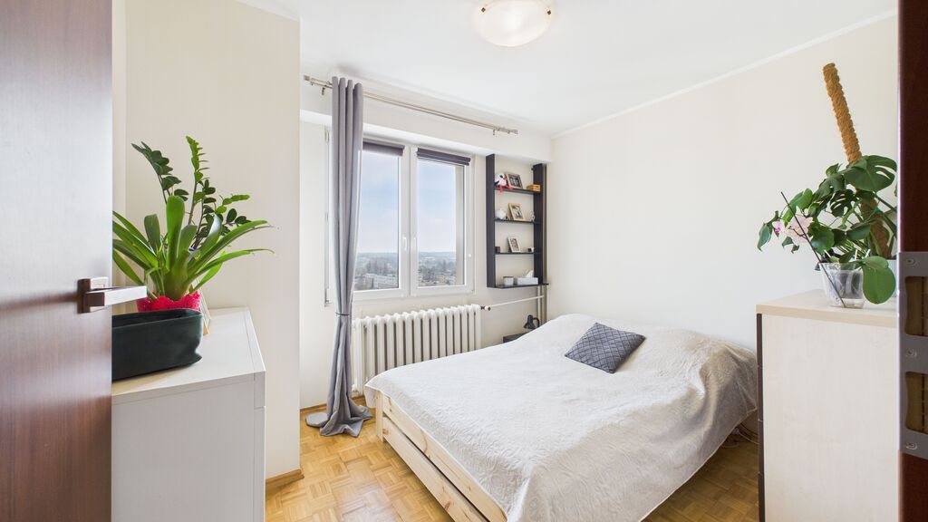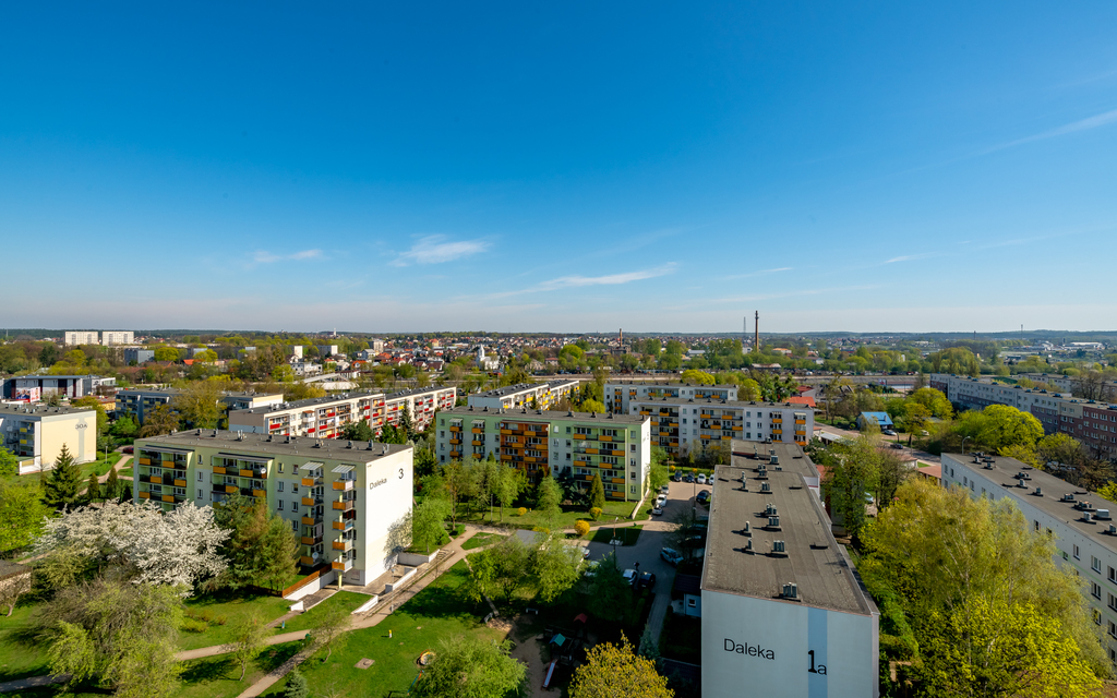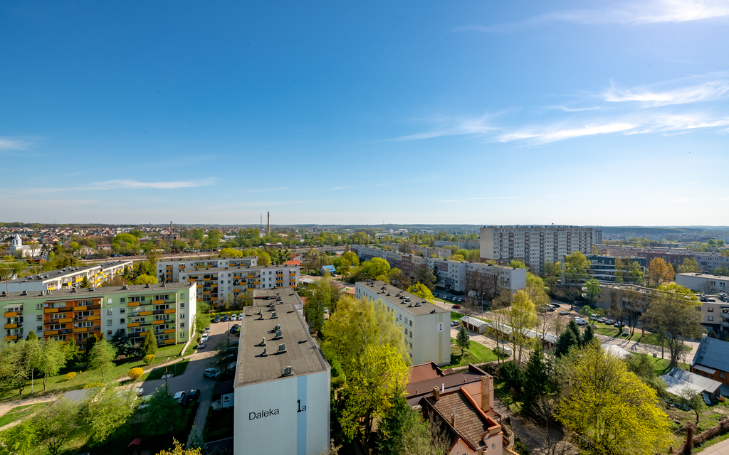 Mieszkanie dobrze doświetlone, widok na panoramę miasta, pod blokiem dużo miejsc parkingowych.