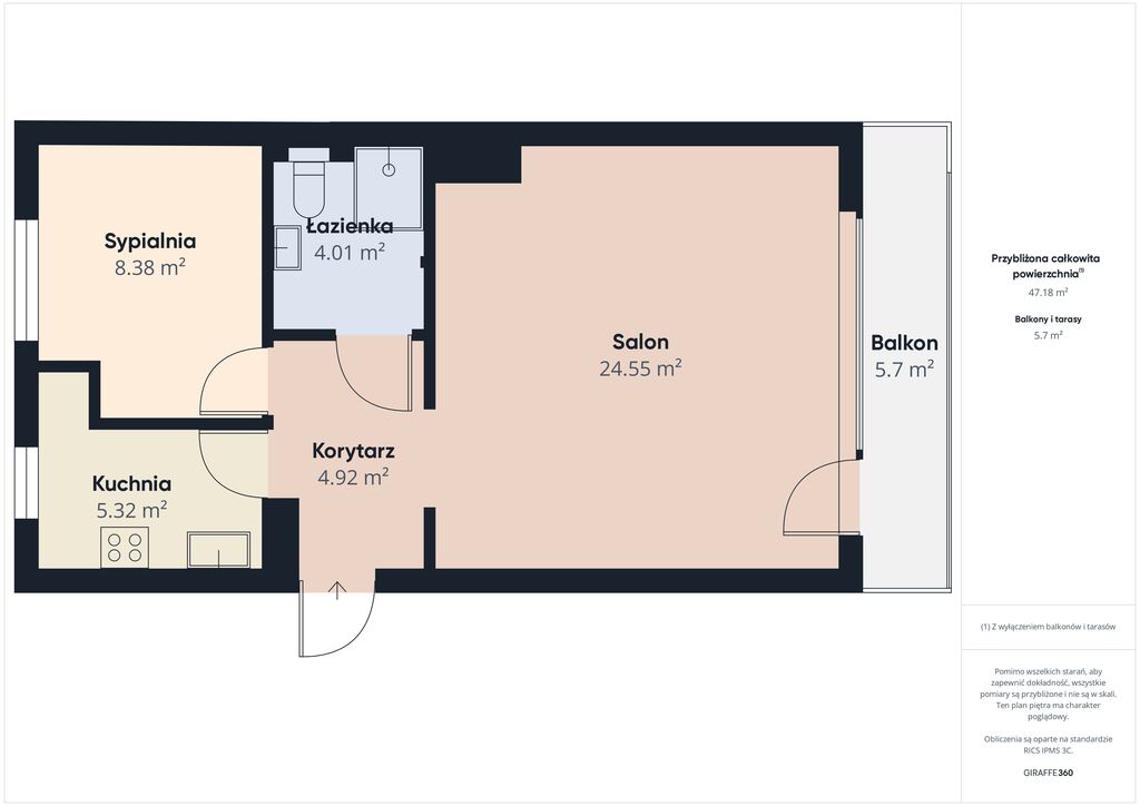 Przedstawione wizualizacje i grafiki mają charakter wyłącznie poglądowy i stanowią wyłącznie materiał pomocniczy, ułatwiający zorientowanie się w ogólnym wyglądzie oferowanej nieruchomości.