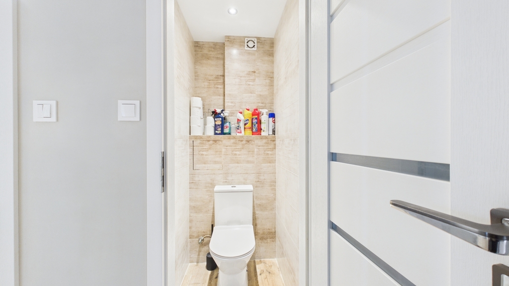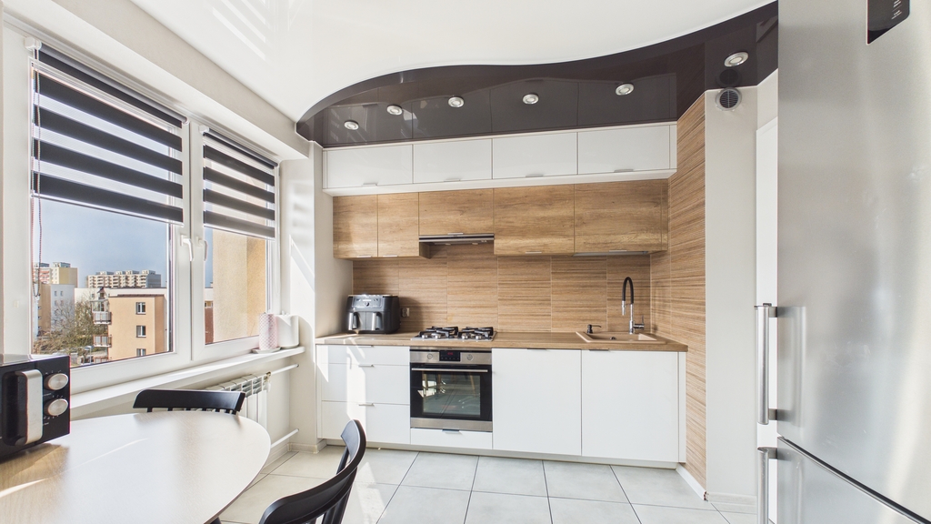 W głównej sypialni przestronna szafa. Napinane sufity w kuchni, łazience i WC.