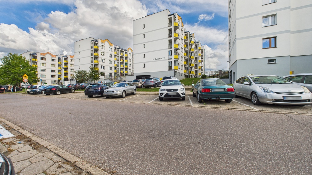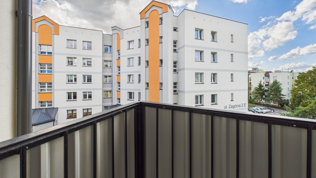 Białymstoku. Osiedle Dziesięciny II, budynek po termomodernizacji w 2023 roku. Ekspozycja okien północny wschód (sypialnia) i południowy zachód ( salon i kuchnia).