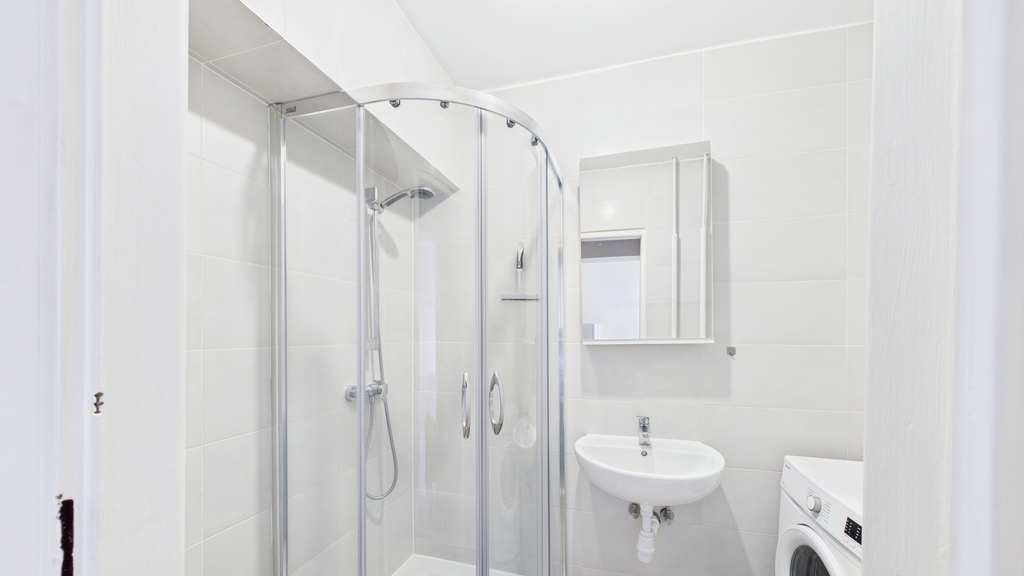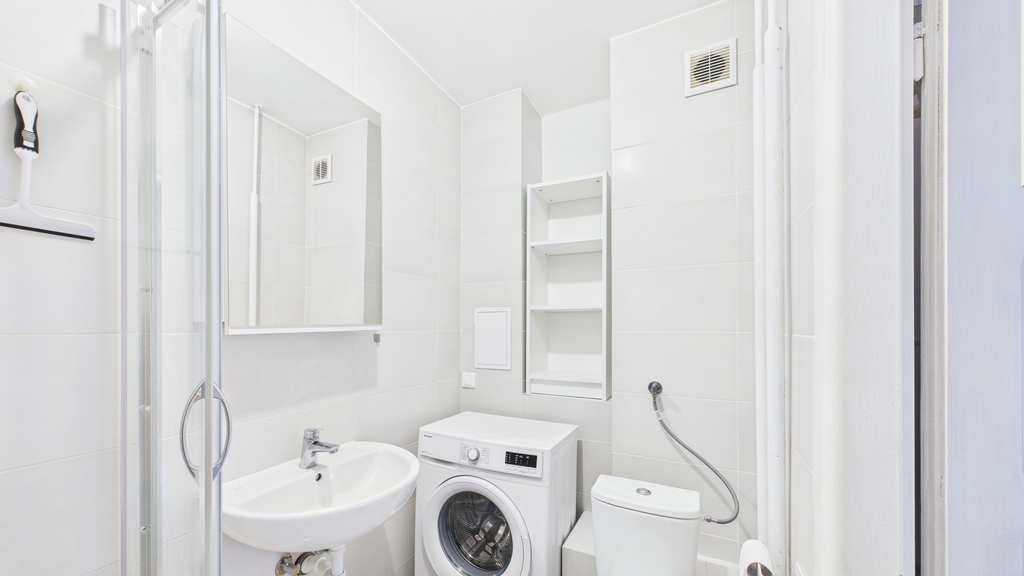 - łazienka z wc : prysznic, umywalką, pralka, słupek, wc, lustro/szafka