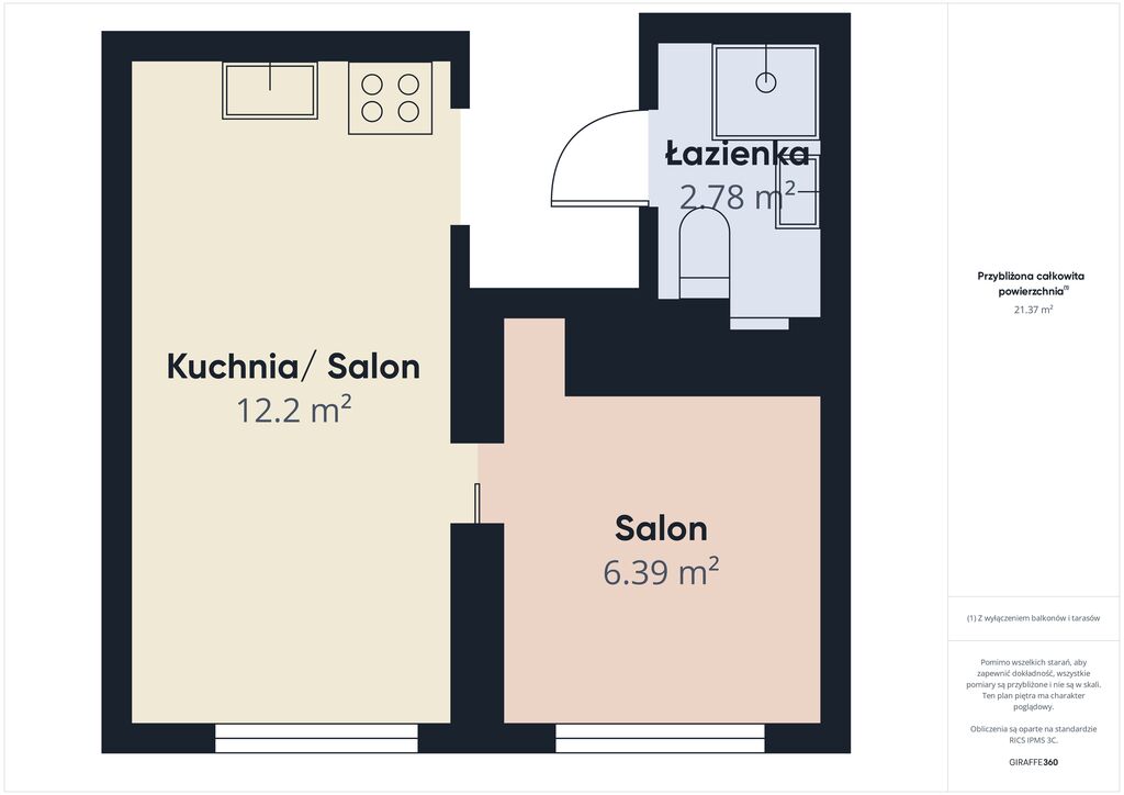 Ilość pomieszczeń: Do dyspozycji Najemcy jest salon z kuchnią, sypialnia, przedpokój
