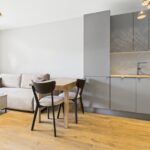 - aneks kuchenny: zabudowa mebli kuchennych, stół rozkładany, 2 krzesła, płyta indukcyjna, piekarnik elektryczny, zmywarka, lodówka
