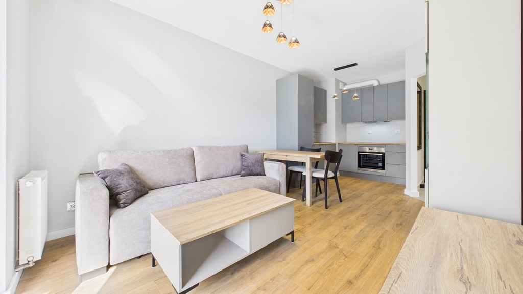 Standard: Mieszkanie w bardzo dobrym standardzie, dla pierwszego Najemcy.  Jasne, nowocześnie umeblowane.