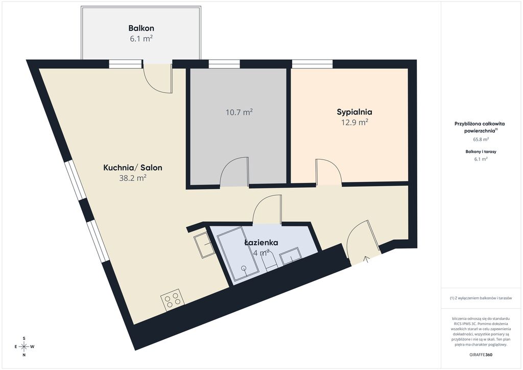 Powierzchnia mieszkania to 66 m² i składa się z:- salon z aneksem kuchennym i wyjściem na balkon o pow. 6.1 m2 (w salonie nowa rozkładana rogówka)