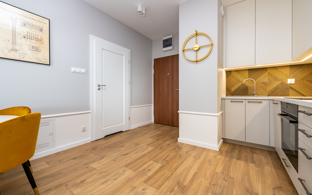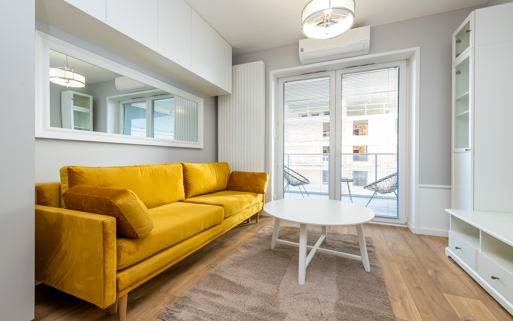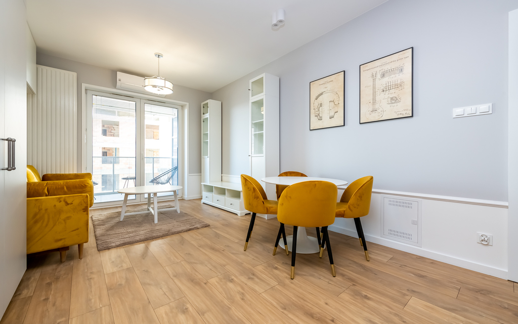 Mieszkanie składa się z:* pokój dzienny z wyjściem na balkon (wygodna rozkładana kanapa, zabudowy pojemnych szaf, stolik kawowy, komoda RTV)