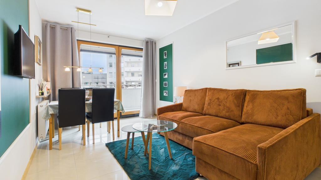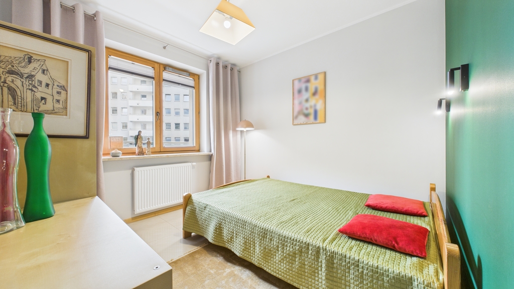 Salon jest dobrze doświetlony i umożliwia wygodne wydzielenie części wypoczynkowej oraz jadalnianej. Balkon 11,2 m² stanowi realne przedłużenie przestrzeni i pozwala na stworzenie prywatnej strefy relaksu w centrum miasta.