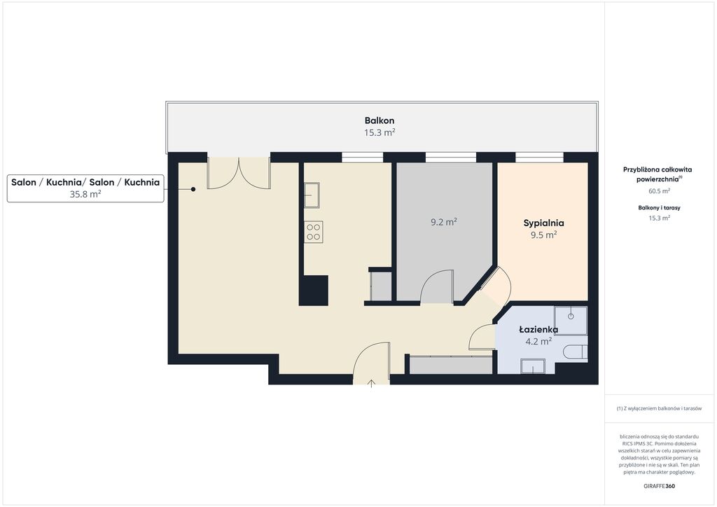 Przedstawione wizualizacje i grafiki mają charakter wyłącznie poglądowy i stanowią wyłącznie materiał pomocniczy, ułatwiający zorientowanie się w ogólnym wyglądzie oferowanej nieruchomości.