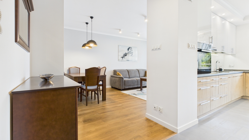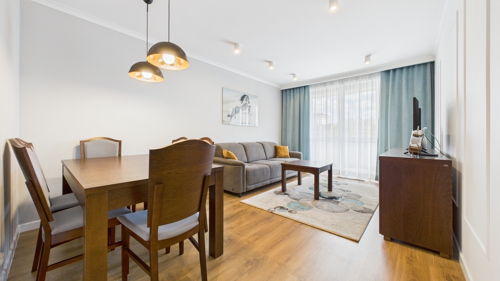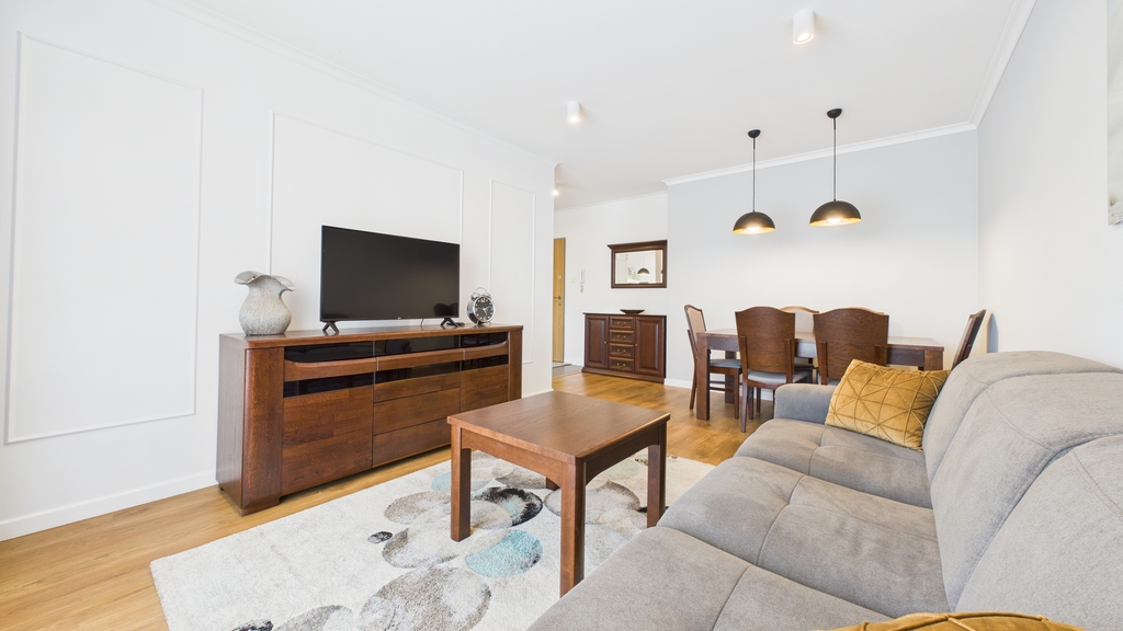 Standard : Mieszkanie w wysokim standardzie, nowocześnie wyposażone, jasne, umeblowane z dużym balkonem/15m2/ Idealne dla osób ceniących komfort.