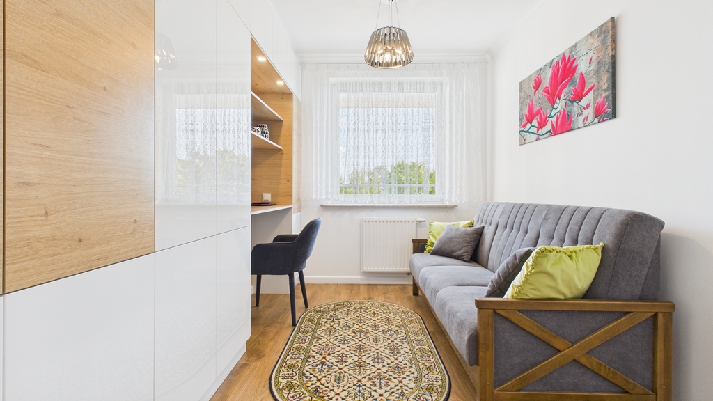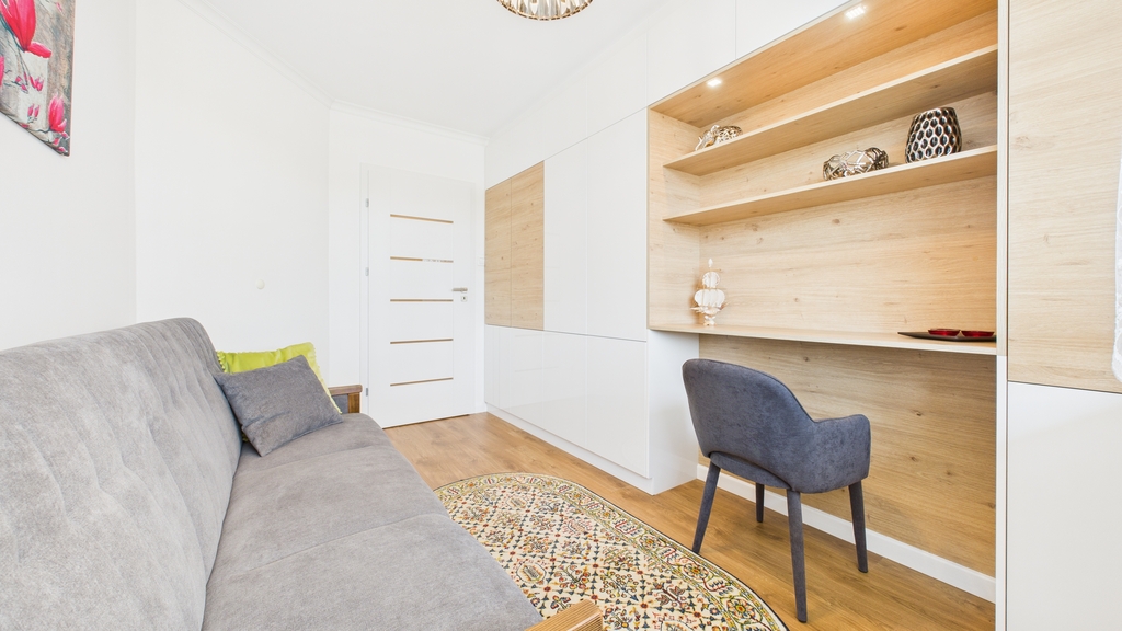 * pokój: zabudowa szafy z toaletka/biurkiem, łózko rozkładane
