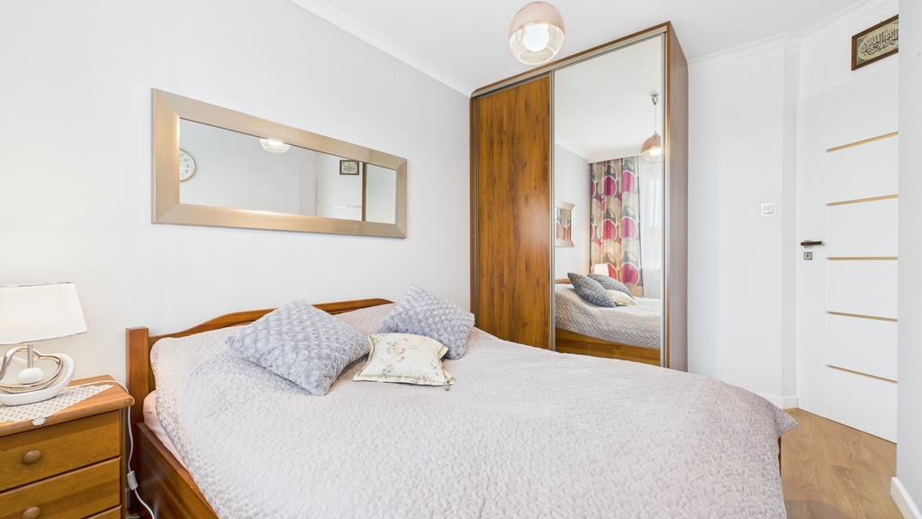 * sypialnia:, łóżko 2 osobowe z materacem, pojemna szafa