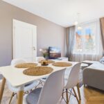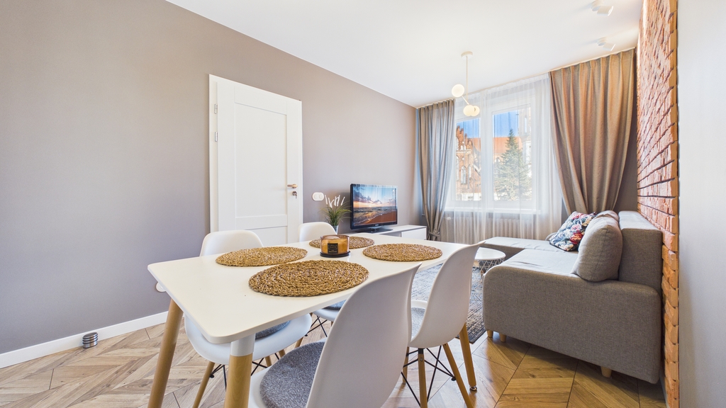 Standard: Mieszkanie zadbane, nowocześnie umeblowane i wyposażone, jasne, bez balkonu. Okna skierowane na dziedziniec, co daje ciszę i komfort mieszkania.