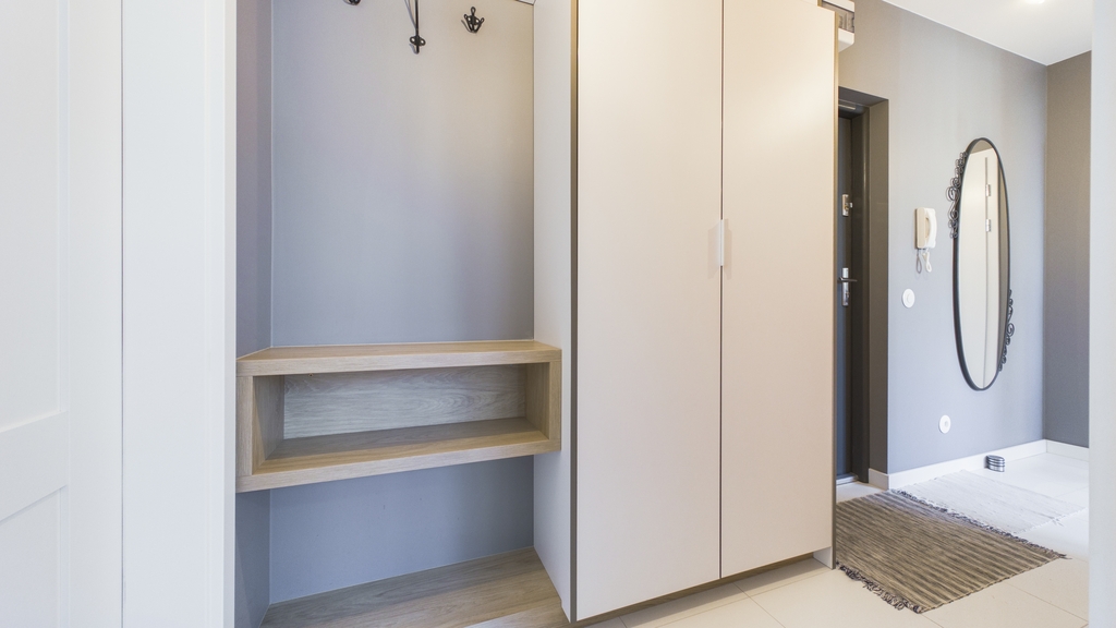 * przedpokój: (wieszak na ubrania, szafa)