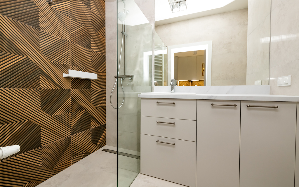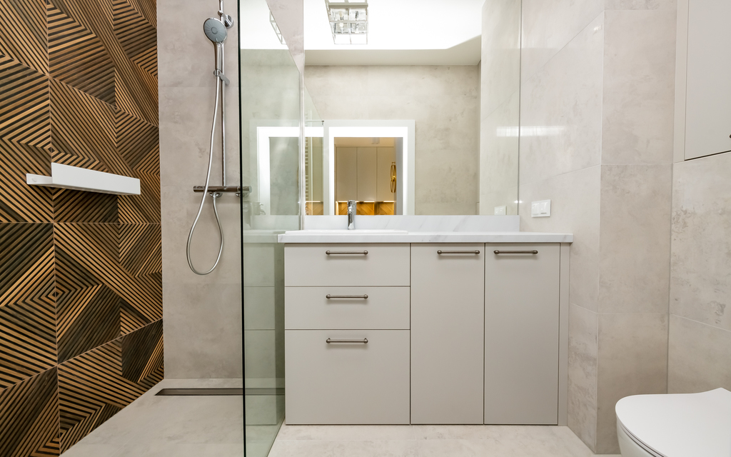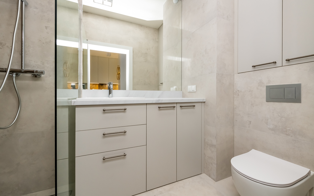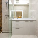 * łazienka (pralka, prysznic, w-c, umywalka z szafką)
