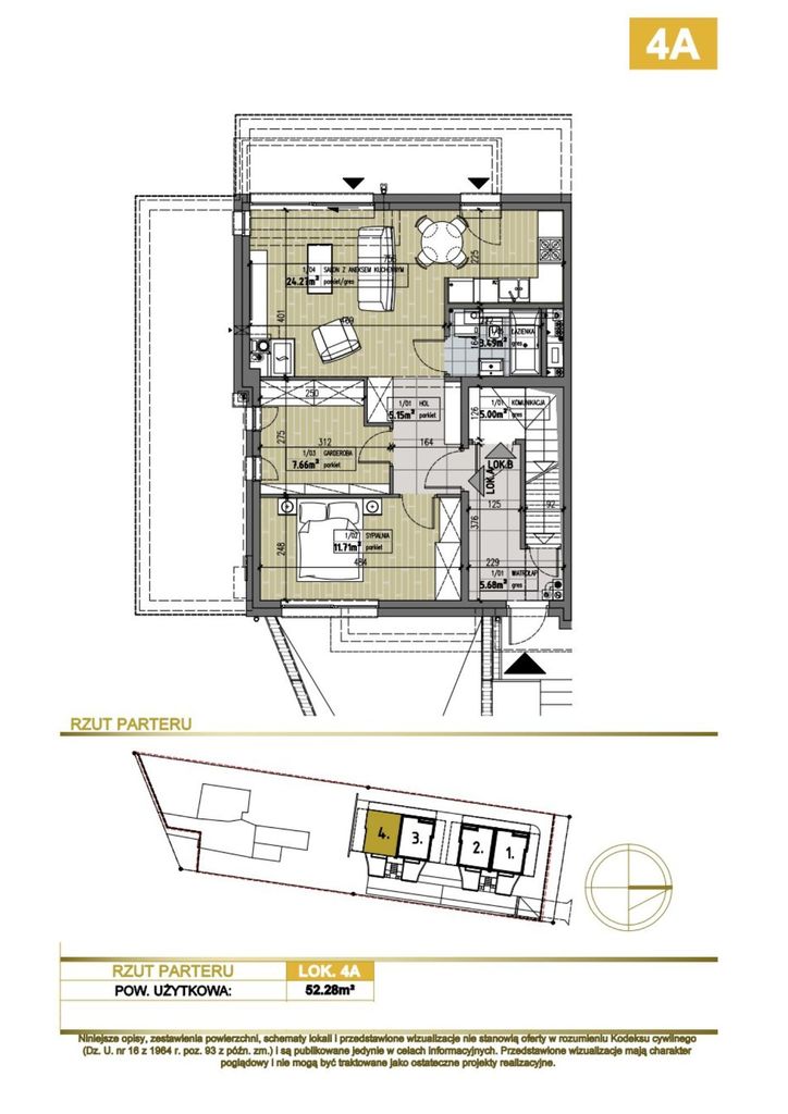 W przedmiotowym lokalu na powierzchni 52,28m2 znajdują się: