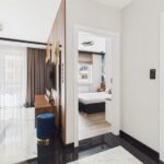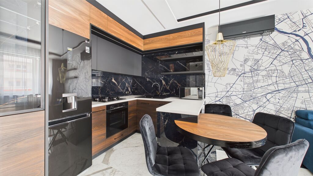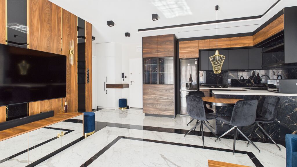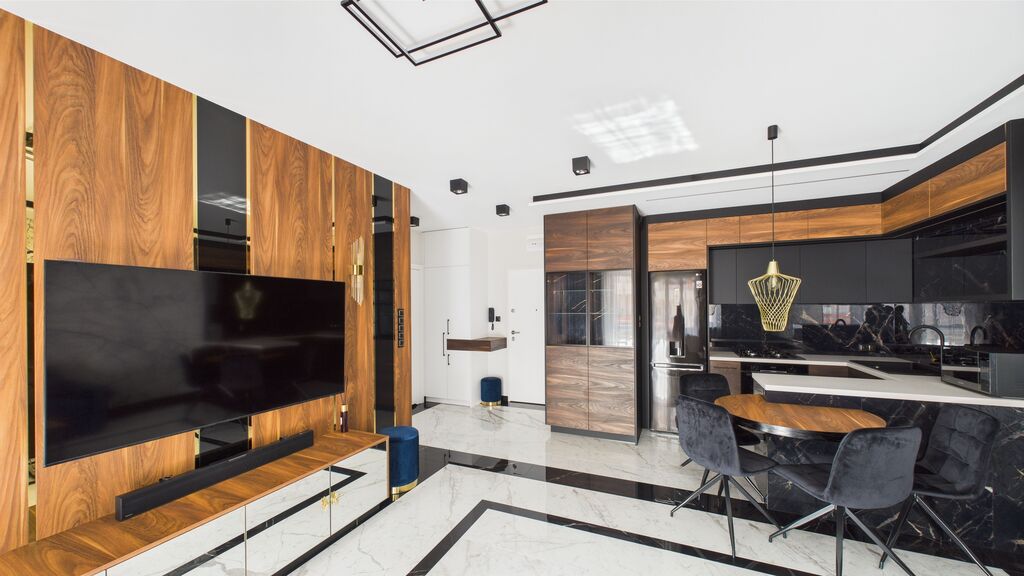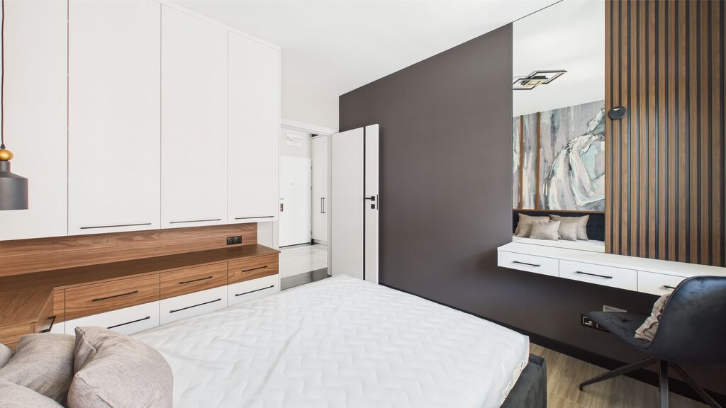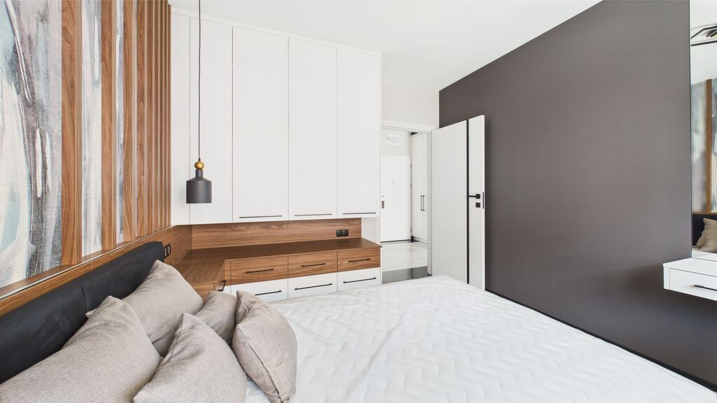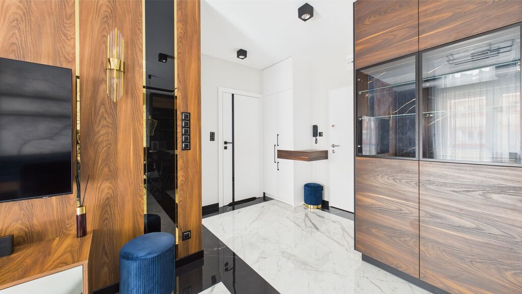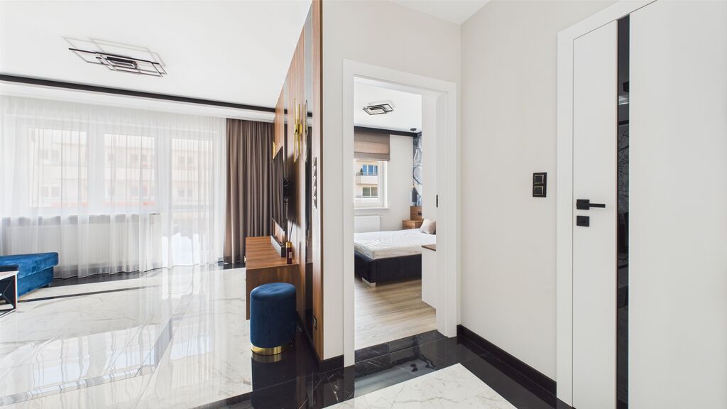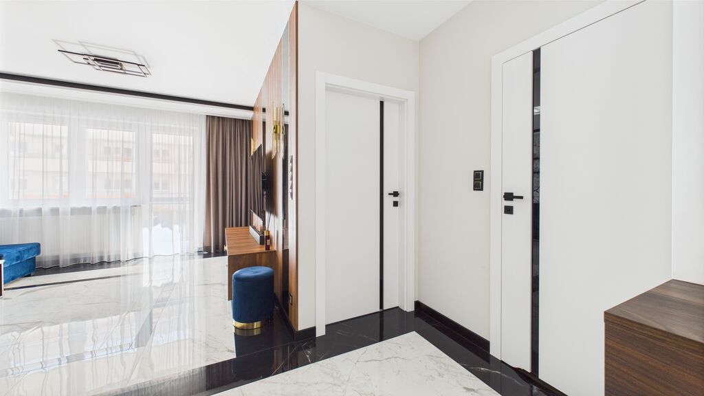 Wnętrze mieszkania zachwyca nowoczesnym wykończeniem oraz komfortem użytkowania.