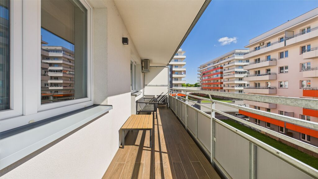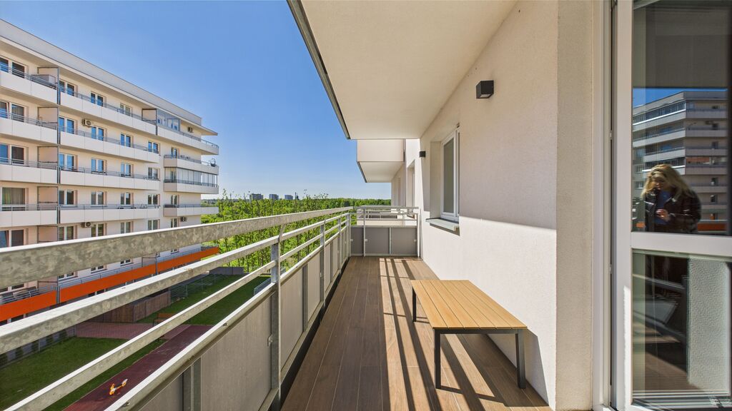 Dodatkowym atutem tej nieruchomości jest duży balkon z kompletem mebli wypoczynkowych o pow. 13.9m2 gdzie mogą Państwo spędzać relaksujące chwile na świeżym powietrzu.
