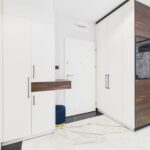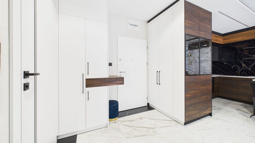 W przedpokoju znajdują się szafy zabudowane, które zapewniają dużo miejsca na przechowywanie.