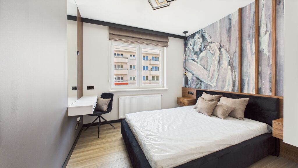 Przedstawiam Państwu nowoczesne, eleganckie mieszkanie o powierzchni 45,07 m², urządzone w wysokim standardzie, w pełni wyposażone i umeblowane.