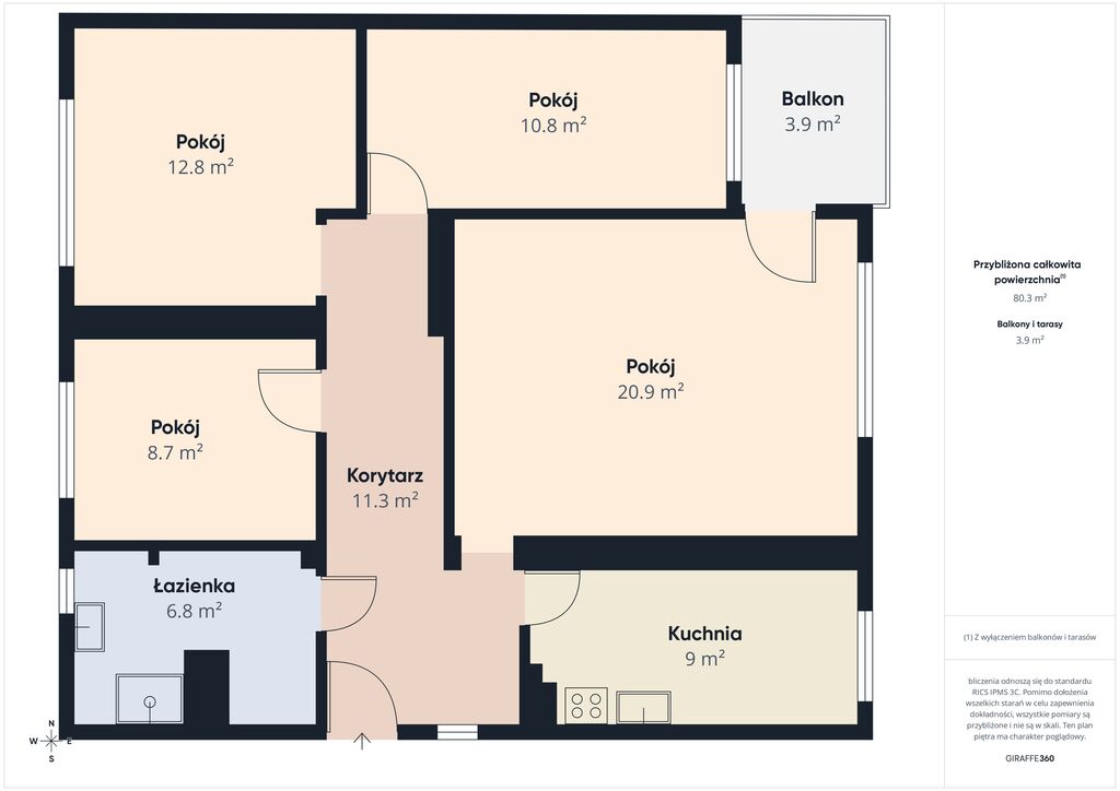 - cztery ustawne pokoje - 20,9m2 + 10,80m2 + 12,80m2 + 8,70m2,