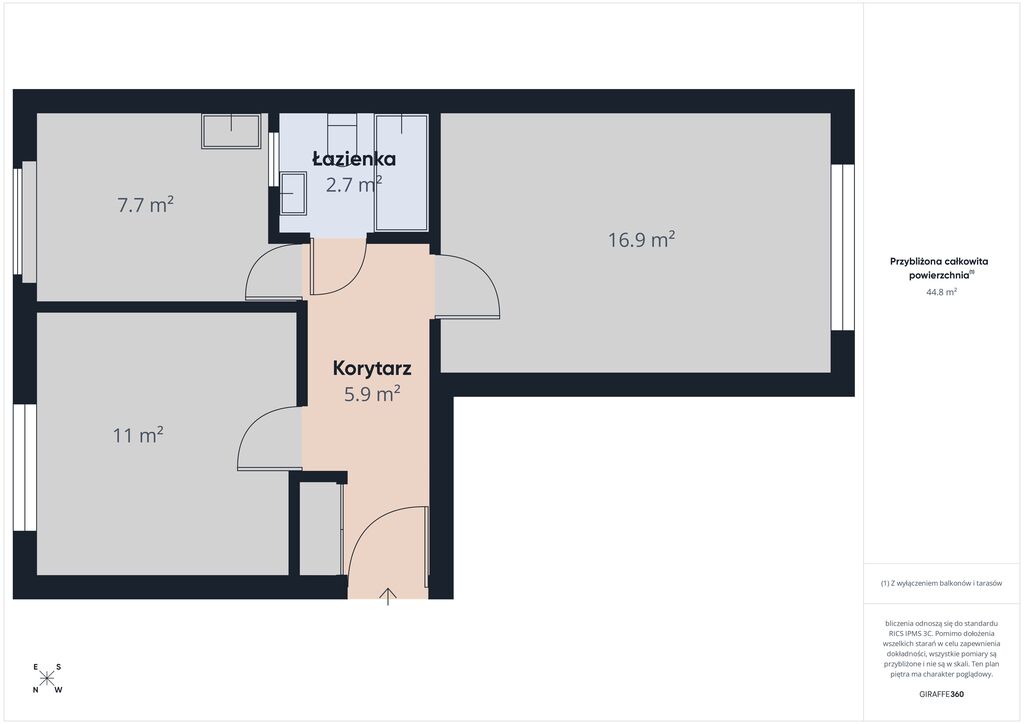 Mieszkanie składające się z 2 niezależnych pokoi (ok. 16,9 m² i 11 m²), oddzielnej kuchni, łazienki oraz korytarza. Układ pomieszczeń jest w pełni rozkładowy, co zapewnia wygodę użytkowania i daje możliwość zmian – np. otwarcia kuchni na salon i przedpokój