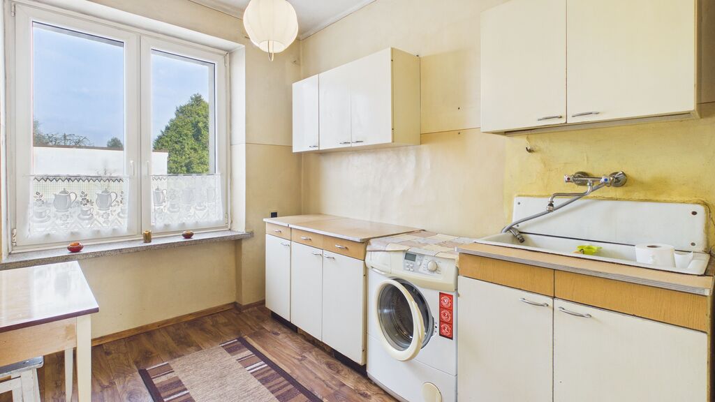 Lokal w stanie do kapitalnego remontu, co pozwala na zaprojektowanie wnętrza od podstaw według własnego standardu. Pomieszczenia są ustawne i dobrze doświetlone, a parter stanowi wygodne rozwiązanie do codziennego życia lub pod wynajem.