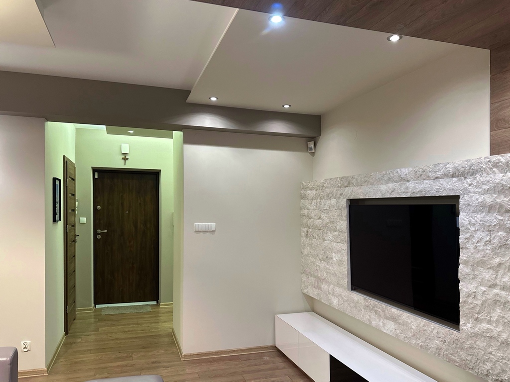 Jest wykończone "pod klucz", za wyjątkiem zabudowy kuchennej - możliwość wydzielenia otwartej kuchni bądź aneksu.