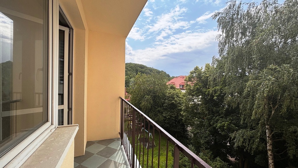 Salon z wyjściem na balkon od strony zachodniej, natomiast sypialnia i kuchnia z ekspozycją wschodnią – mieszkanie jest dobrze doświetlone przez cały dzień.