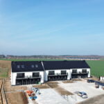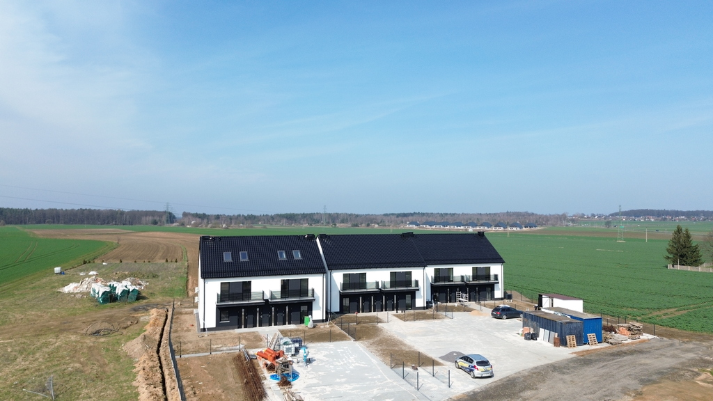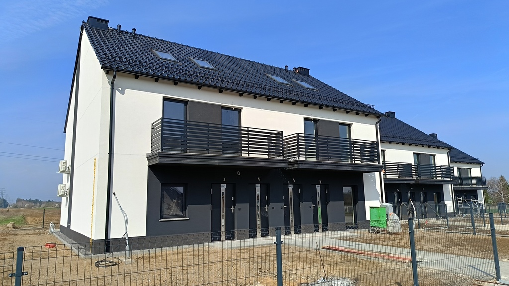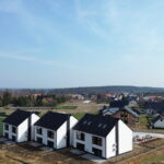 - Inwestycja stanowi trzy budynki dwulokalowe w zabudowie bliźniaczej z ogrodami dla mieszkań na parterze usytuowanymi z tyłu budynków i miejscami parkingowymi (po dwa miejsca na każde mieszkanie) przed budynkami