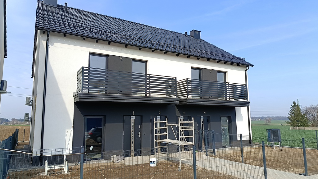 - Inwestycja stanowi budynki dwulokalowe w zabudowie bliźniaczej z ogrodami i miejscami parkingowymi (po dwa miejsca na każde mieszkanie).