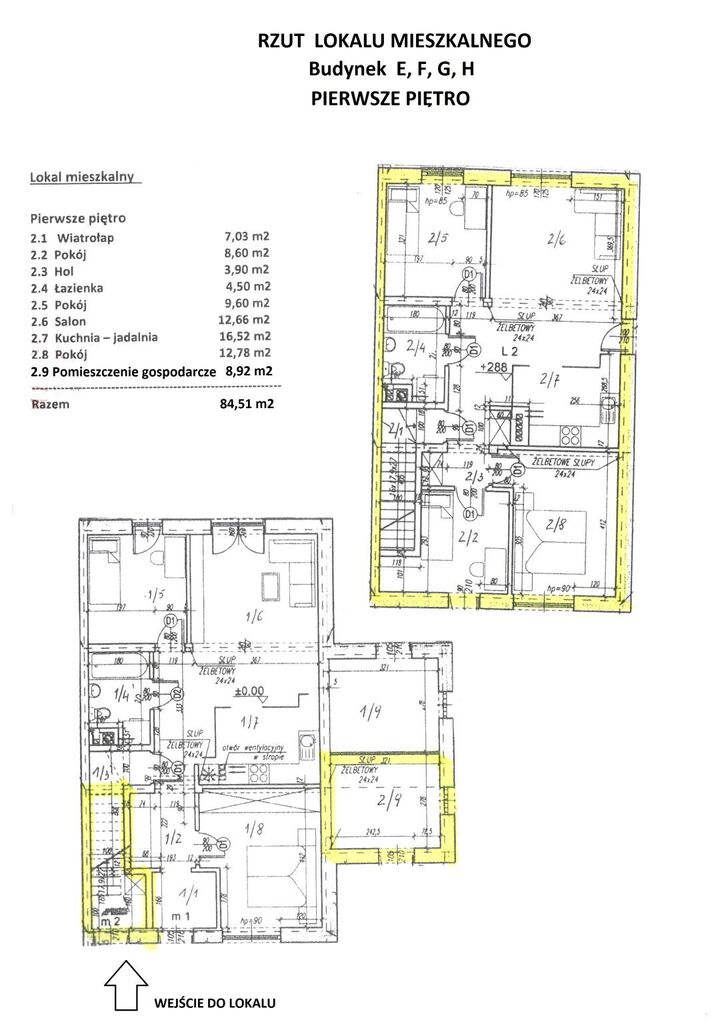 Powierzchnia całkowita 84,51 m2.