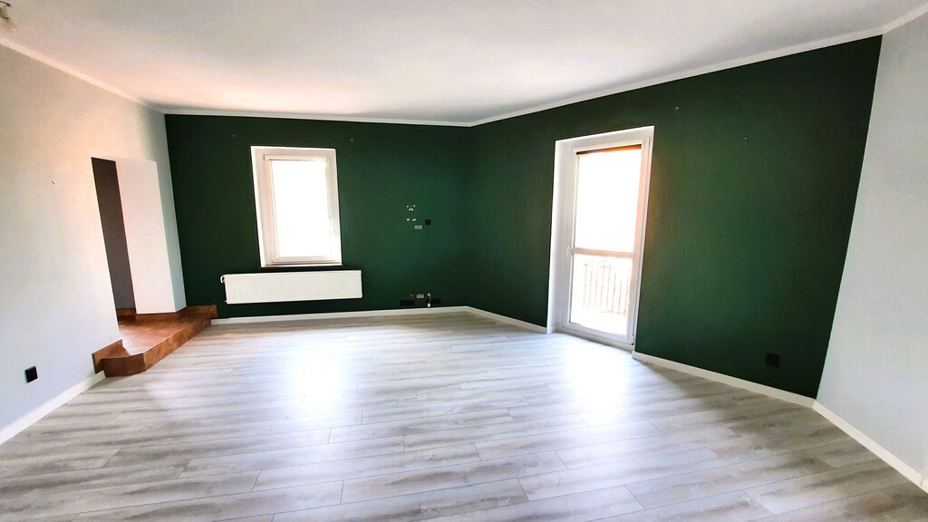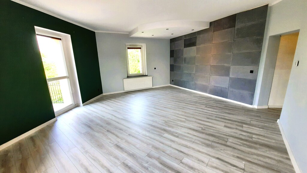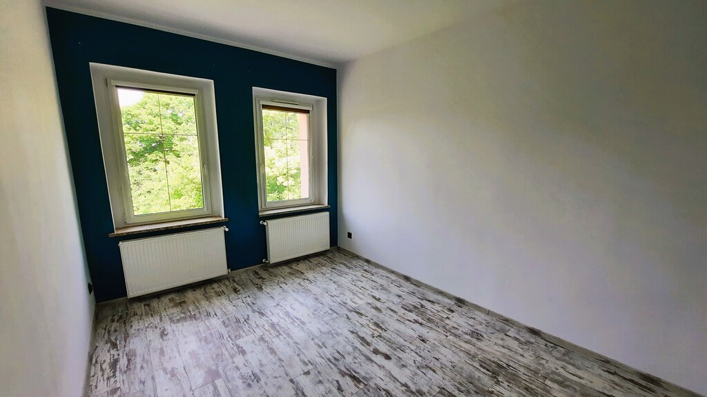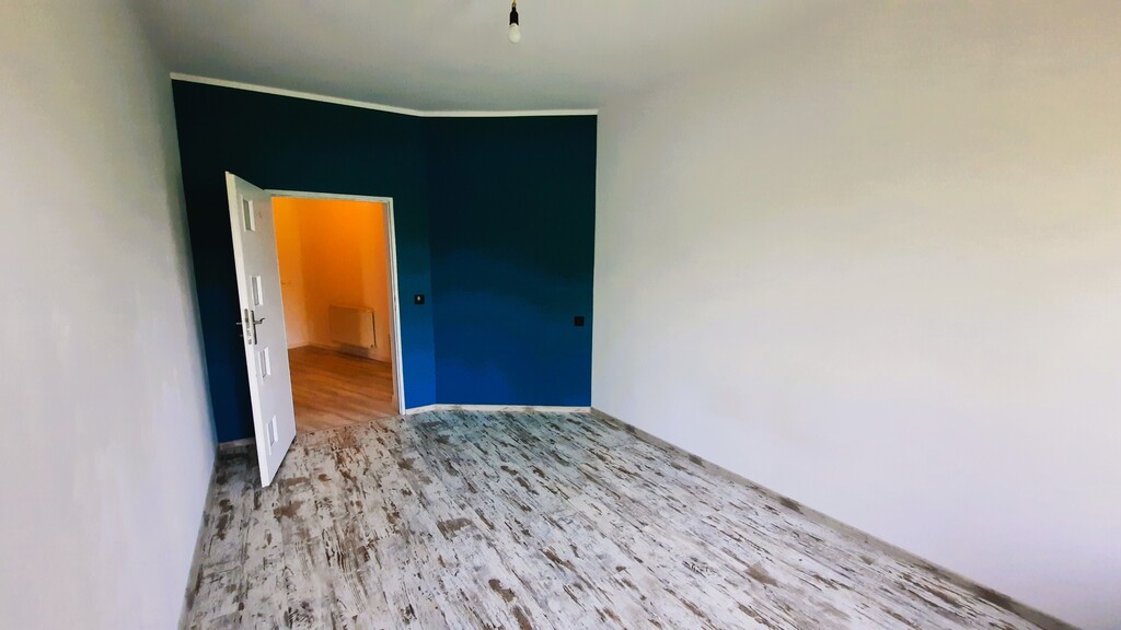 Pokoje puste, bez wyposażenia. Urządzenie pokoi według własnych potrzeb po stronie najemcy. Z salonu prowadzi wyjście na balkon.