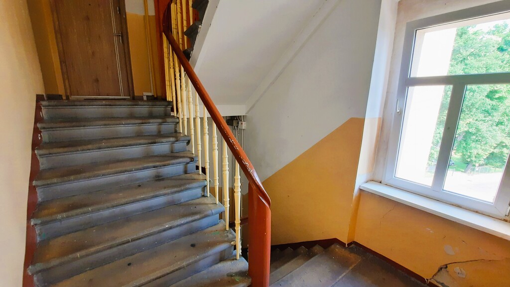 Lokal mieszkalny o powierzchni użytkowej 67,30 m2 położony na trzecim piętrze w trzypiętrowej kamienicy.