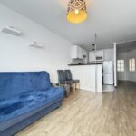 Mieszkanie częściowo umeblowane. W salonie meble wypoczynkowe i TV, w aneksie kuchennym meble kuchenne w zabudowie plus sprzęt AGD. W łazience poza armaturą sanitarną, szafka łazienkowa oraz pralka. Małe pokoje do umeblowania przez przyszłego nabywcę nieruchomości.