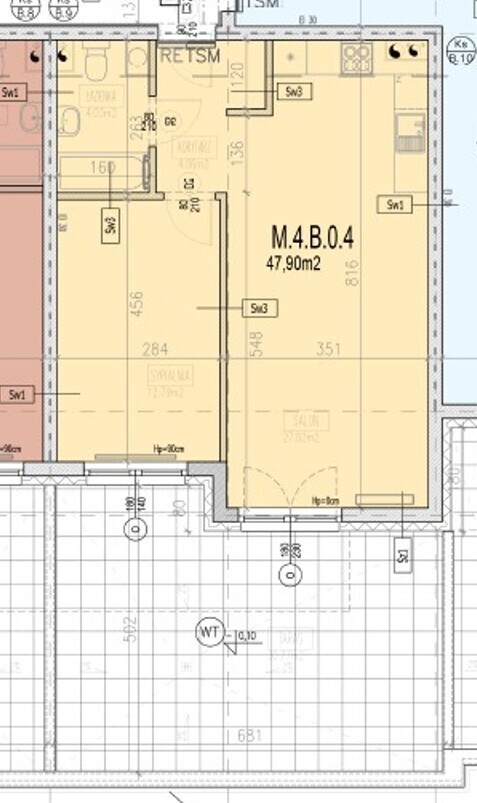 Prezentowana oferta dotyczy mieszkania dwupokojowego nr M4.B.0.4 o powierzchni 47,90 m2 położonego na parterze czteropiętrowego budynku.