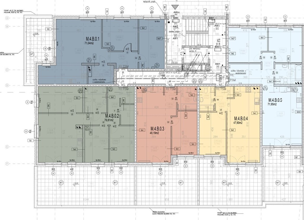 Prezentowana oferta dotyczy mieszkania dwupokojowego nr M4.B.0.4 o powierzchni 47,90 m2 położonego na parterze czteropiętrowego budynku.