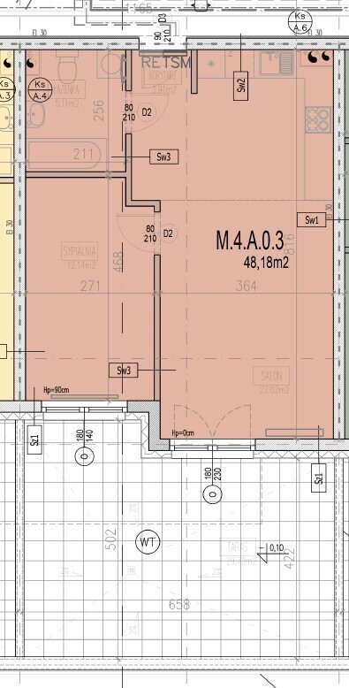 Prezentowana oferta dotyczy mieszkania dwupokojowego nr M4.A.0.3 o powierzchni 48,22 m2 położonego na parterze czteropiętrowego budynku.