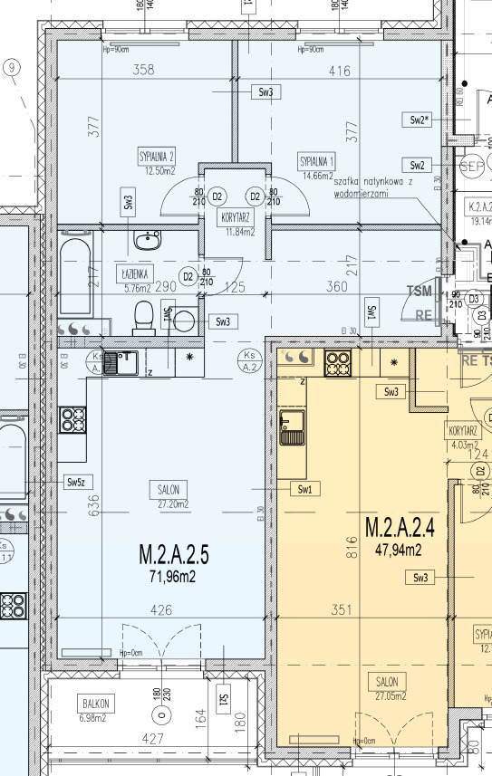 Wymiary lokalu podane na załączonych rzutach są tylko orientacyjne. Rzeczywista powierzchnia mieszkania to 72,48 m2.