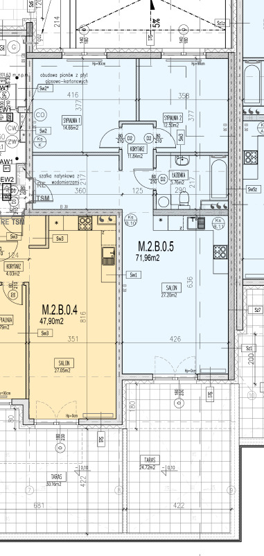 Wymiary lokalu widoczne na rzutach są tylko orientacyjne. Rzeczywista powierzchnia wynosi 72,24 m2.