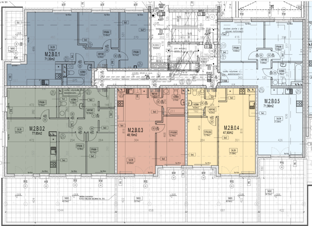 - W ofercie posiadamy w tej lokalizacji również mieszkania dwu i trzypokojowe o różnych powierzchniach na wszystkich pięciu kondygnacjach od parteru do czwartego piętra.