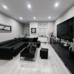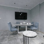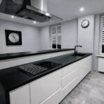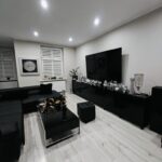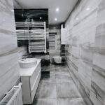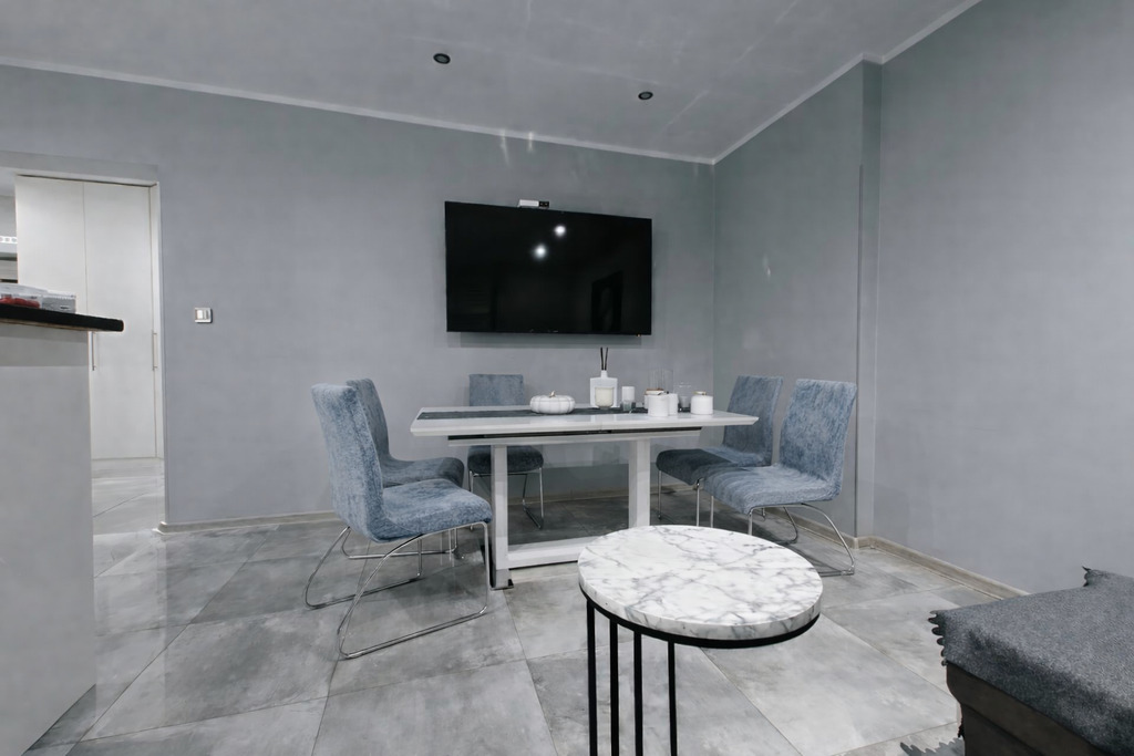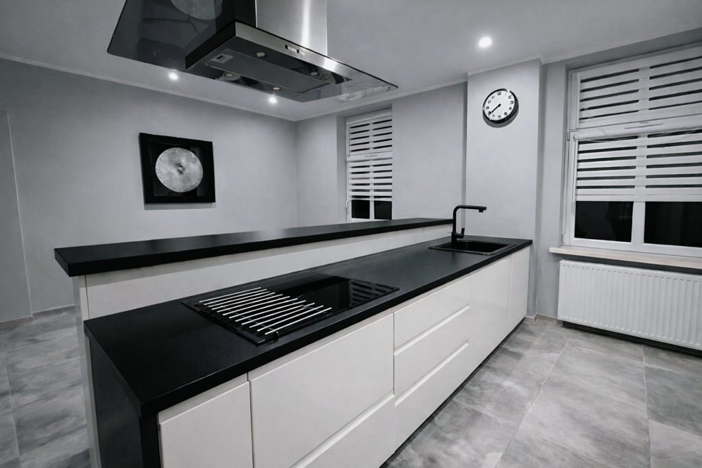 - Sercem mieszkania jest imponujący salon z aneksem kuchennym – otwarta strefa dzienna, w której naturalne światło płynnie łączy się z nowoczesnym designem. To przestrzeń stworzona do porannych kaw, długich rozmów przy winie i spokojnych wieczorów po intensywnym dniu.