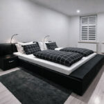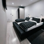 - Dwie komfortowe sypialnie oferują prywatność i wyciszenie, a jedna z nich została wzbogacona o dużą garderobę – prawdziwą luksusową strefę przechowywania.
