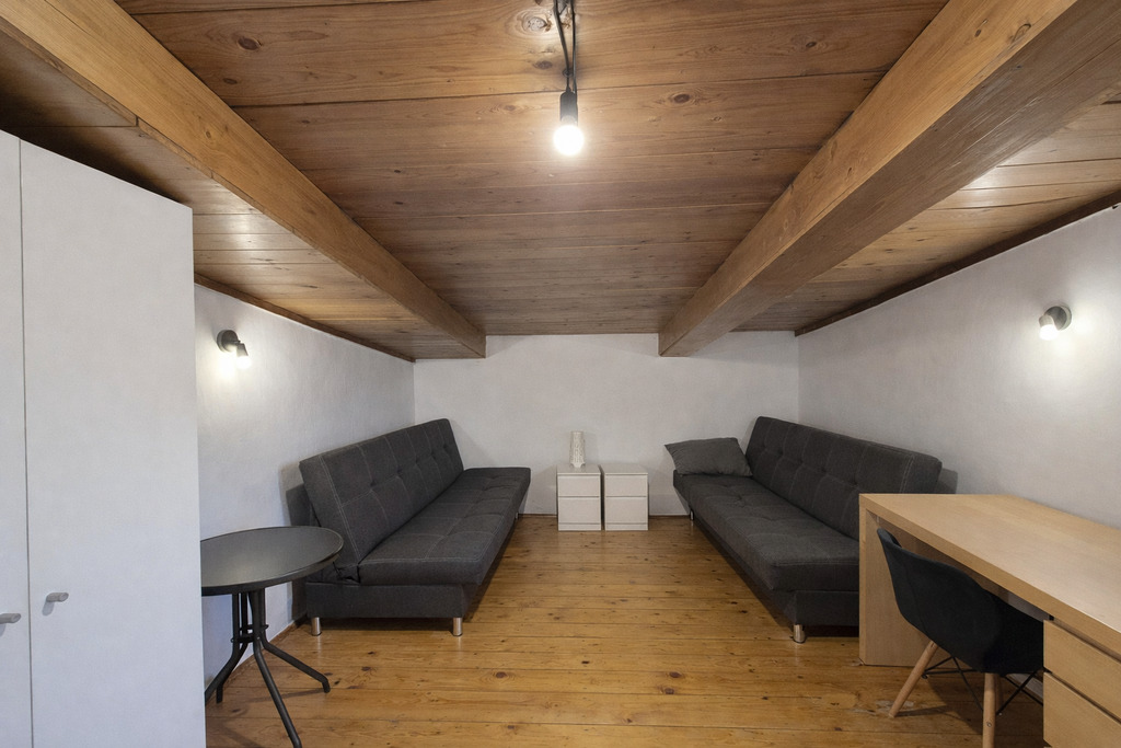 Różnica pomiędzy powierzchnią użytkową a powierzchnią w księdze wieczystej wynika ze skosów – dzięki temu czynsz liczony jest od mniejszego metrażu, co znacząco obniża koszty utrzymania.
