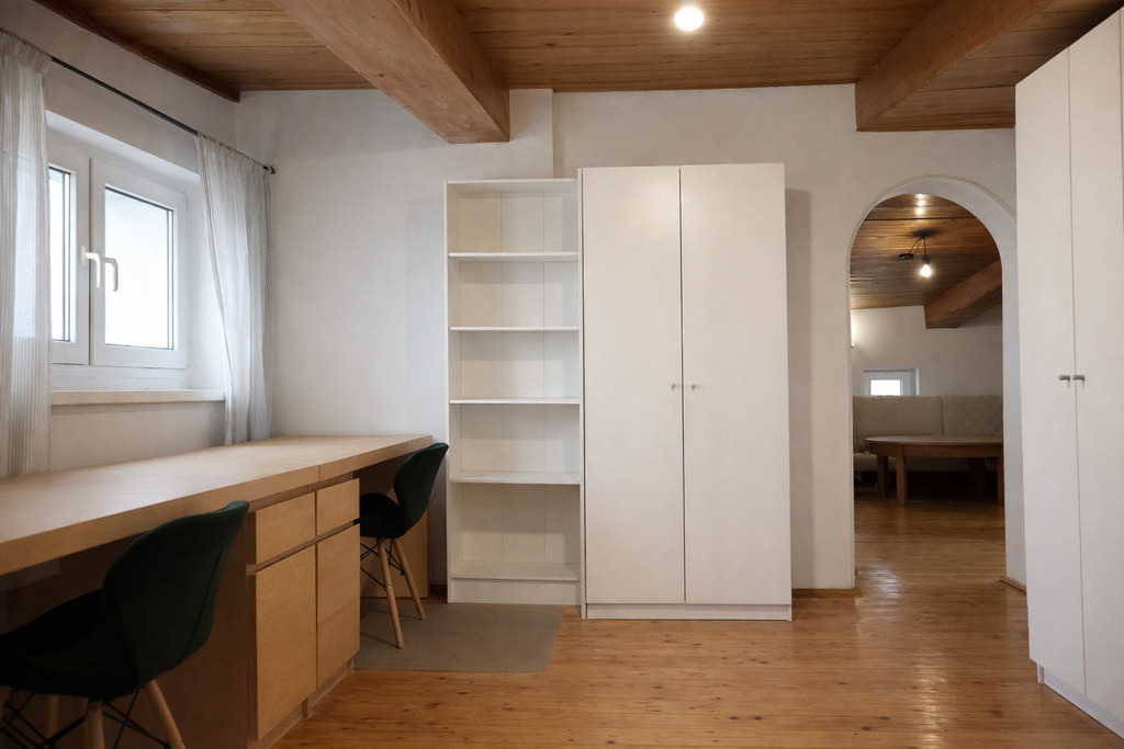 Istnieje możliwość wydzielenia dodatkowego pokoju pod wynajem kosztem największego pomieszczenia.