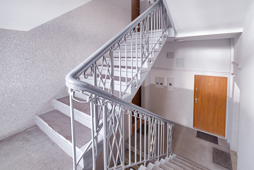 - klatka schodowa po remoncie zabezpieczona domofonem,