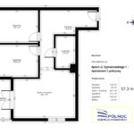 Oferowany apartament 3 pokojowy o powierzchni 57,32m2 składa się z następujących stref: