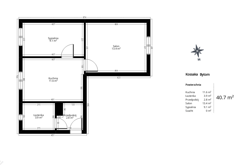 - Metraż: 40,74 m²