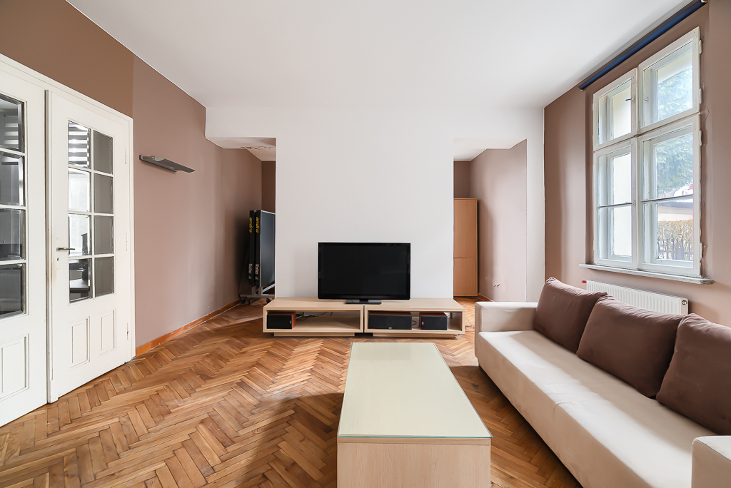 Klimatyczne mieszkanie w willi położonej w świetnej dzielnicy Bytomia - Knajfeld. W budynku została odświeżona elewacja,  wyremontowana została klatka schodowa oraz zamontowany został nowoczesny domofon. Lokale posiadają bardzo ustawne i duże pokoje, które dają duże możliwości aranżacyjne. Przeprowadzono remont w ramach którego, zamontowana została nowa kuchnia, położone zostały gładzie oraz zaaranżowana została nowe łazienki.  Dzięki nieprzeciętnej wysokości ścian, mieszkanie jest bardzo przestronne i słoneczne. Pozostawione oryginalne drewniane drzwi oraz położony drewniany parkiet nadają nieruchomości unikalny klimat.